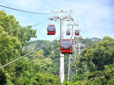 Tuyến cáp treo ở chùa Hương dài 900 m, đi qua hai ga là Miếu Cô và Hương Tích. Mỗi cabin có sức chứa khoảng 8 người.
