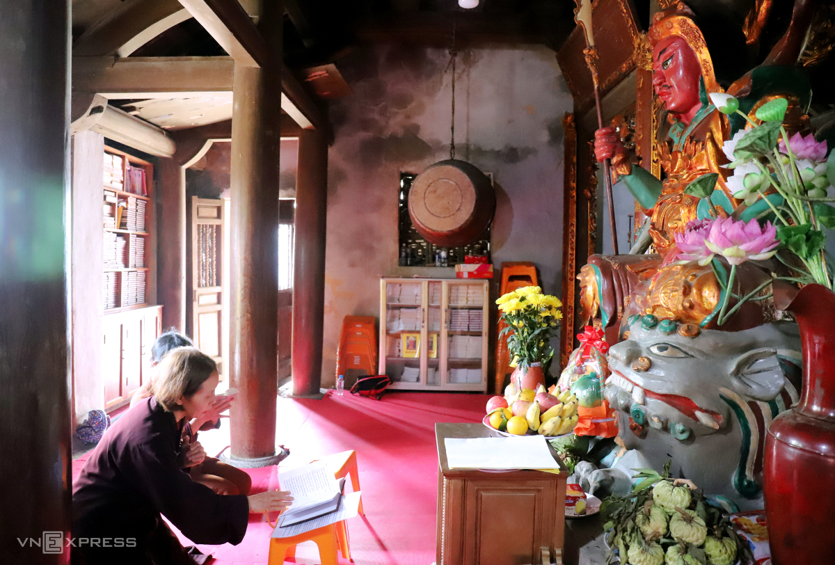 Phía trong thượng điện có nhiều tượng phật cổ, người dân thường vào đây quỳ lạy, đọc sớ cầu an.
